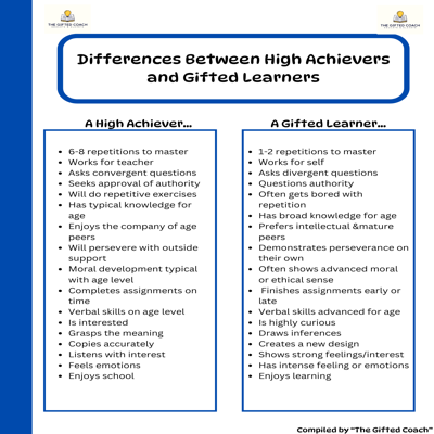 Gifted vs. High Achiever: Comparison Flyer for Teachers & Parents