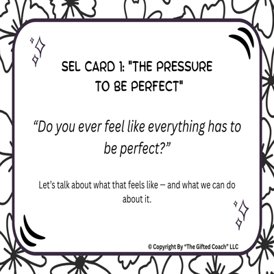 Gifted kids ask big questions—and sometimes wrestle with even bigger feelings. Connection Cards: Guiding Big Talks at Home gives parents a practical, supportive way to open conversations on perfectionism, overthinking, self-doubt, and more. Each card includes prompts, activities, and parent insights to help families connect, listen, and build resilience together.