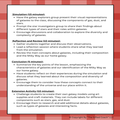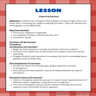 In this immersive simulation, students will embark on a cosmic journey to explore the wonders of galaxies. Theyβll uncover how galaxies are composed of gas, dust, countless stars, and the celestial objects orbiting those stars. With engaging activities and guided discussions, students will dive into the mysteries of our very own home galaxyβthe Milky Way.