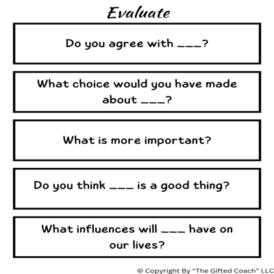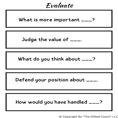 Aligned with Bloom’s levels of thinking (Analyze, Evaluate, Create, and more)