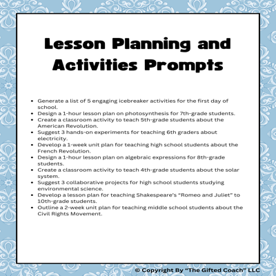 · Saves teachers valuable prep time with ready-to-go AI prompts
