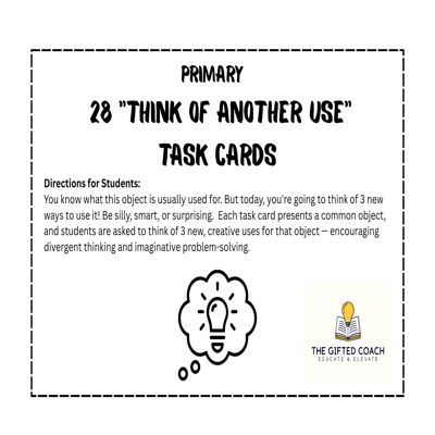 ➡️ Download your set of “Think of Another Use” Task Cards and watch your students turn the ordinary into extraordinary!